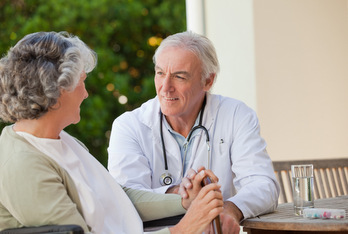 Senior doctor talking with his mature patient